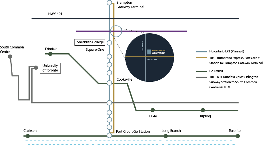 3-minute walk to the Future LRT Stop, and 15-minutes to Toronto Pearson International Airport. Minutes from Hwy 403, which will allow for seamless travel throughout the GTA and easy connections to other major highways in the area including 407, 401, and the QEW.